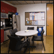 The favored location combined multiple suites into one large office environment. The design added work spaces, a conference room, reception area, and break room. A 60’ long x 7’ high long undulating wall breaks up the interior office space. This feature came out of the office structure that thrives on open communication and sharing of ideas. The “idea wall” is clad with a surface that will receive dry erase markers and provide an open forum for sharing of information.