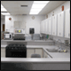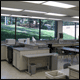 A classroom was converted into a nutrition laboratory for the Food Sciences Department. Seven shared work stations were developed each containing lockable storage cabinets, work surfaces, two downdraft gas ranges, a sink, dishwasher and microwave oven. One of the stations was designed to be handicapped accessible. An exterior wall allows generous amounts of natural light into the space and offers views of a landscaped hillside.